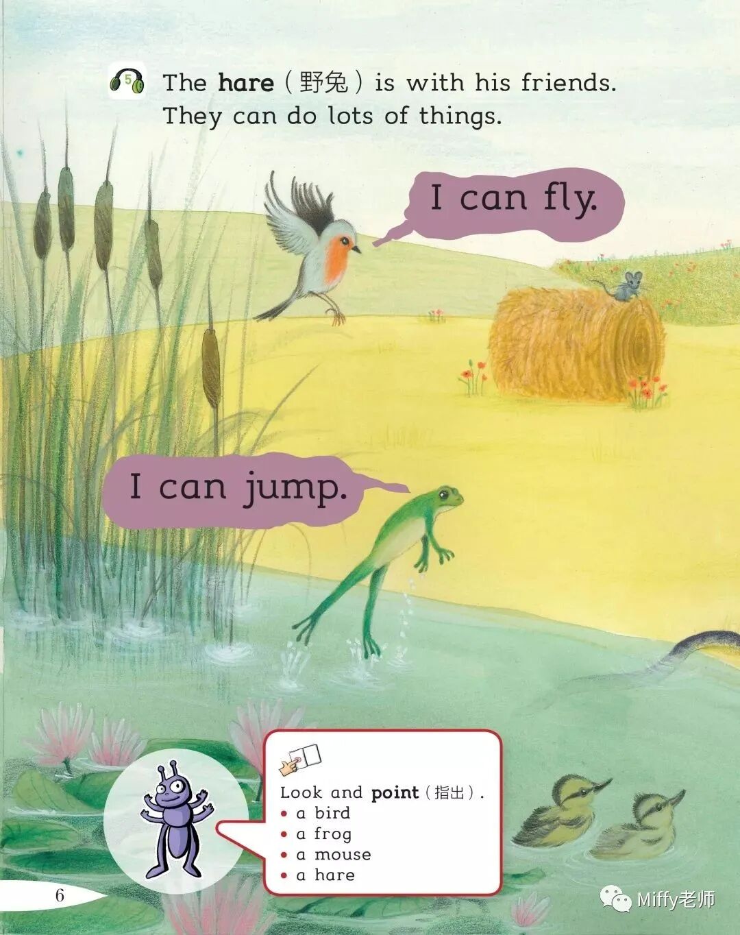 The frog says:“I can jump.” 青蛙说:“我会跳。