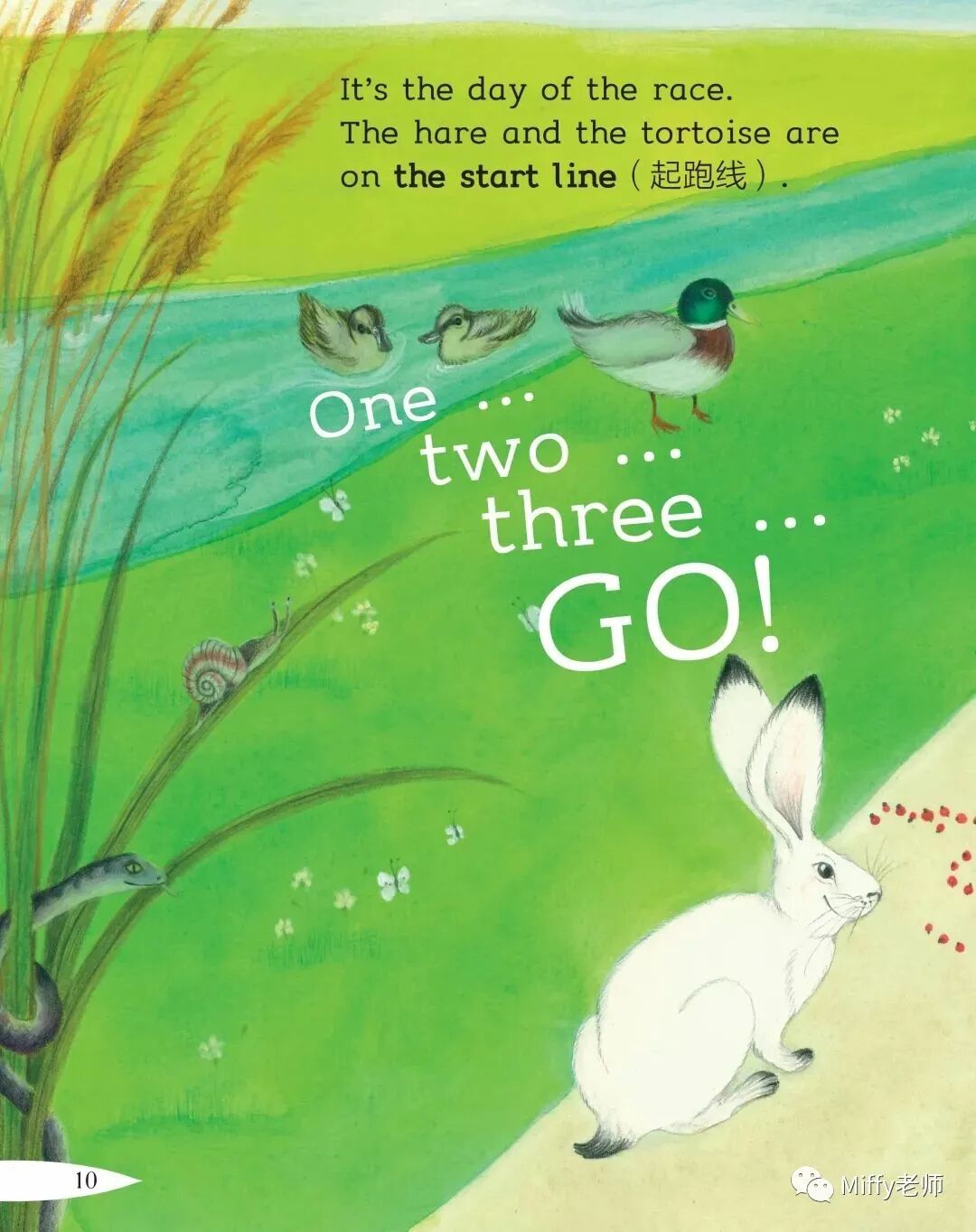 兔子和乌龟在起跑线上。“一,二,三,跑!”