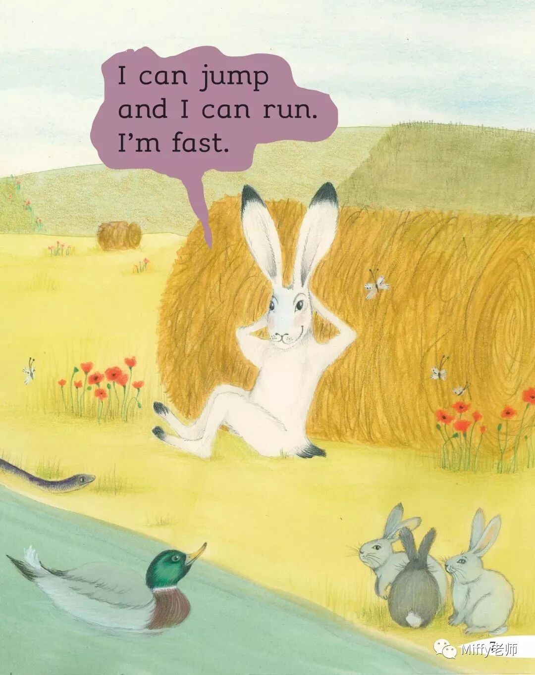 Therabbit says:“I can jump and I can run. I’m fast,”
