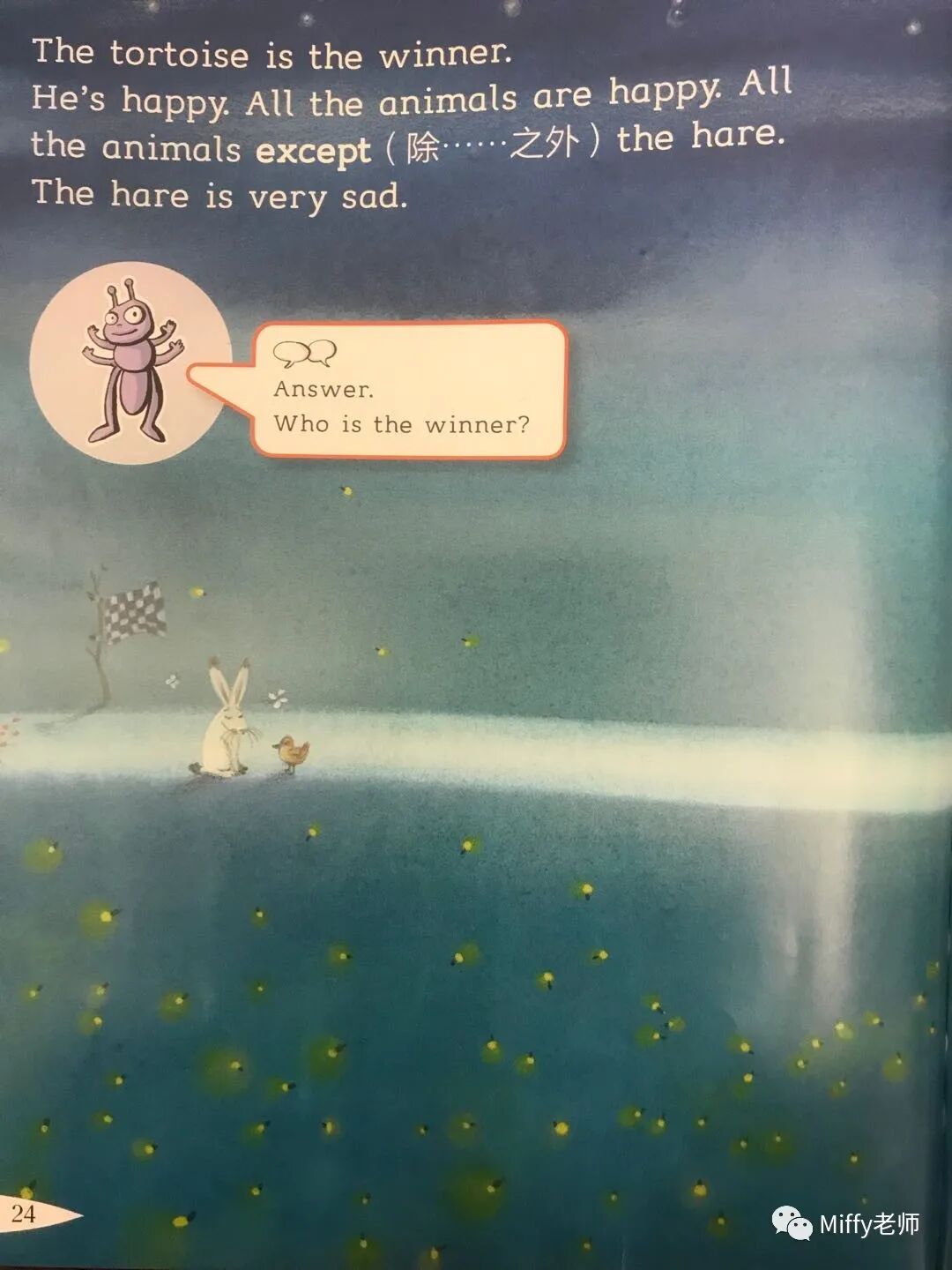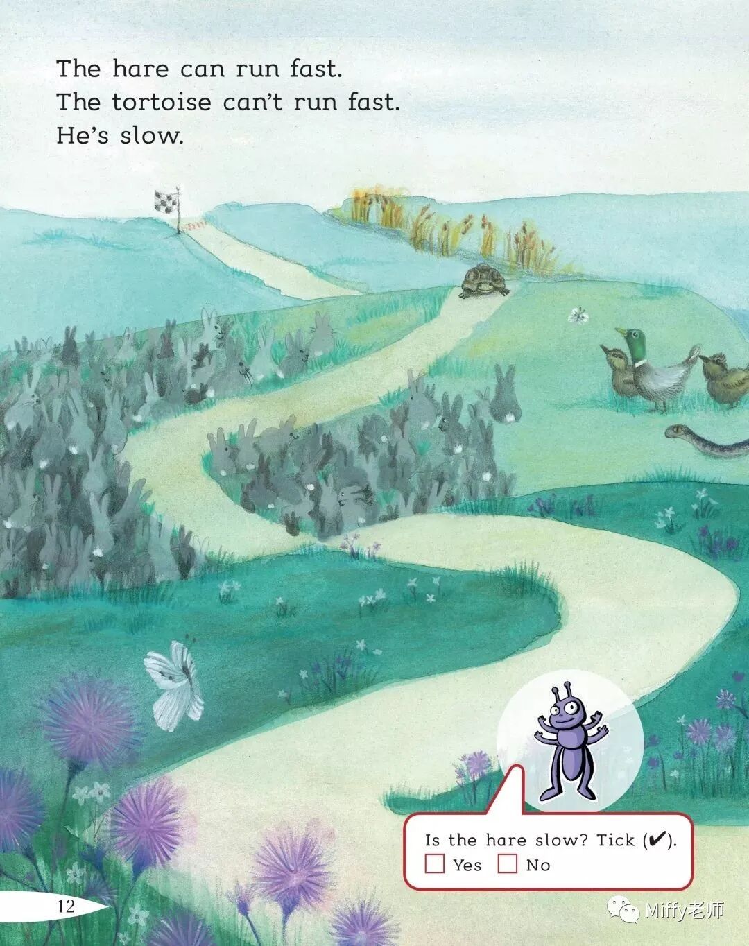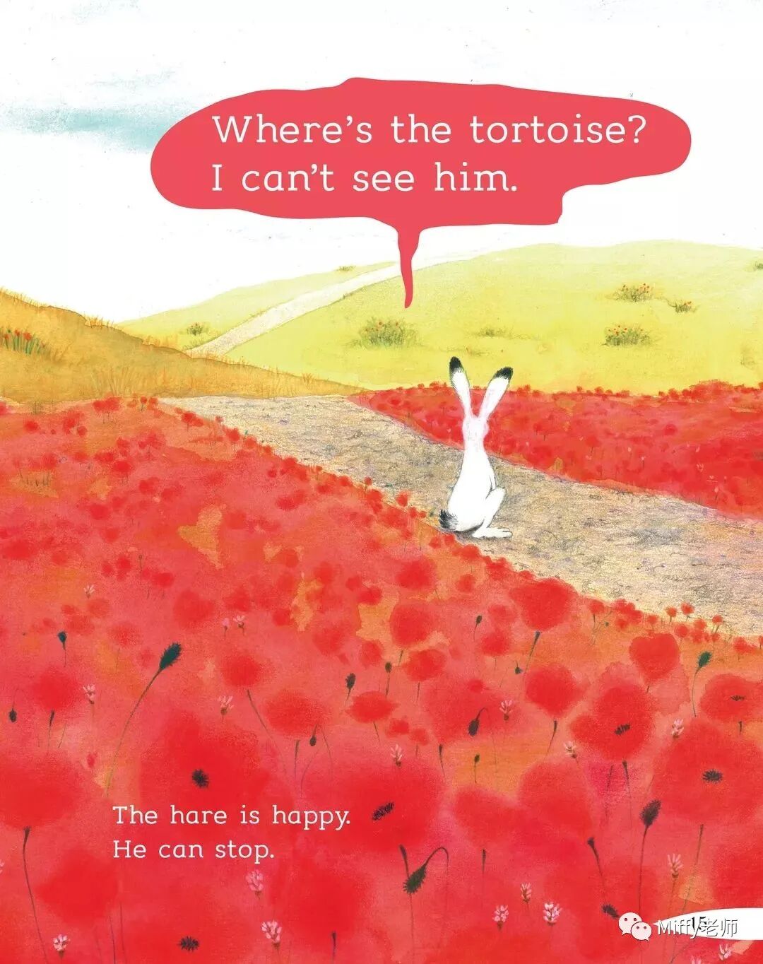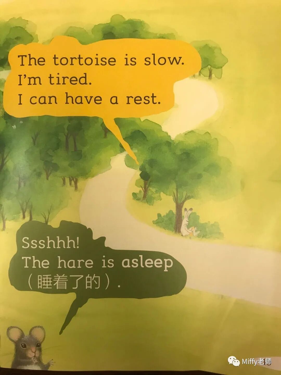 The rabbit isn’t in the race.The hare is under a tree. He’s tired(累).