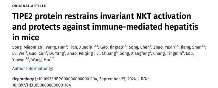 揭示了免疫调节分子TIPE2通过影响iNKT细胞的激活在免疫介导的肝损伤发挥重要功能的分子机制