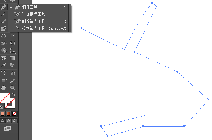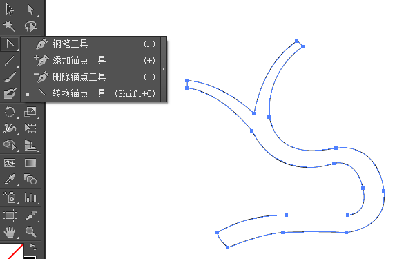 因此,利用钢笔工具可以灵活绘制出我们想要的图形。如下图就是用钢笔工具绘制出弯曲分叉的血管。先用钢笔工具画出血管的大概路径,再用转换锚点工具改变路径的方向和弯曲程度,勾勒出血管的轮廓。