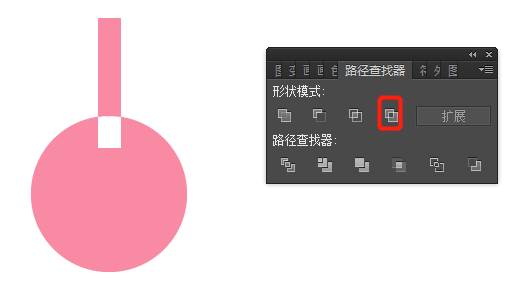 Ai中另一个常用于绘制复杂形状的工具是路径查找器。点击右侧功能面板内或菜单栏中的「窗口」下的路径查找器既可打开。