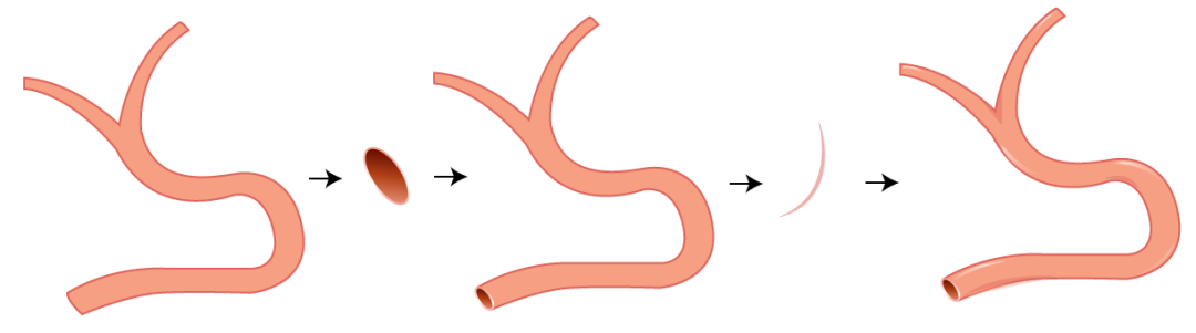 对勾画出来的闭合路径进行颜色填充和描边,再绘制一个椭圆,进行渐变填色和描边,置于血管开口处。再绘制一些渐变描边的弧线作为血管的阴影和高光。
