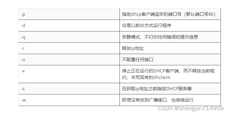 2025年dhclient命令(dhclient命令详解) 科技前沿 • 2025-05-26 09:53 • 阅读 23 dhclient命令(dhclient命令详解)dhclient 命令来自于英文词组 DHCP client 的缩写 其功能是用于动态获取或释放 IP 地址 使用 dhclient 命令前需要将网卡模式设置成 DHCP 自动获取 否则静态模式的网卡是不会主动向服务器获取如 IP 地址等网卡信息的 nbsp 语法格式 dhclient 参数 网卡 nbsp 常用参数 nbsp 参考实例 nbsp 大家好,我是讯享网,很高兴认识大家。 讯享网 小讯 nsenter命令详解(no switchport命令) 上一篇 2025-05-28 17:27 ip1180打印机卡纸怎么修(l1118打印机卡纸) 下一篇 2025-05-26 17:37 相关推荐 nsenter命令详解(no switchport命令) 1744588800 2025年工具类图书包括哪些类型(工具类图书名称) 1744588800 模型框架结构(框架结构建筑模型) 1744588800 单片机设计作品(单片机设计作品有哪些) 1744588800 2025年柯美c7000(柯美c7000代码2423) 1744588800 数组方法every(数组方法splice) 1744588800 ldr指令(ldr指令用法) 1744588800 2025年ip报文格式的题目(ipinip报文格式) 1744588800 2025年pointnet++网络代码(pointnet网络结构) 1744588800 ip1180打印机卡纸怎么修(l1118打印机卡纸) 1744588800 2025年conda如何删除虚拟环境(conda删除虚拟环境路径) 1744588800 conv2d参数解释(conv2d()) 1744588800 五金工具类型(五金工具类型大全) 1744588800 2025年docker版本号有哪些(docker-ce版本) 1744588800 react组件定义(react组件定义onClick) 1744588800 @test执行顺序(请问运行test函数会有什么样的结果) 1744588800 2025年cp1501图解(cp1525) 1744588800 对于一个头指针为head的单向链表(对于一个头指针为h的带头结点的单链表) 1744588800 版权声明:本文内容由互联网用户自发贡献,该文观点仅代表作者本人。本站仅提供信息存储空间服务,不拥有所有权,不承担相关法律责任。如发现本站有涉嫌侵权/违法违规的内容,请联系我们,一经查实,本站将立刻删除。如需转载请保留出处:https://51itzy.com/kjqy/152985.html
