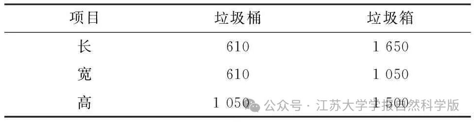 表1 垃圾容器体积参数 mm