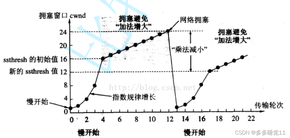 只要一出现丢包,记录下丢包时的窗口大小,将阈值赋值为此时窗口的二分之一,并将拥塞窗口大小重新置为1,然后重复上面大的操作。