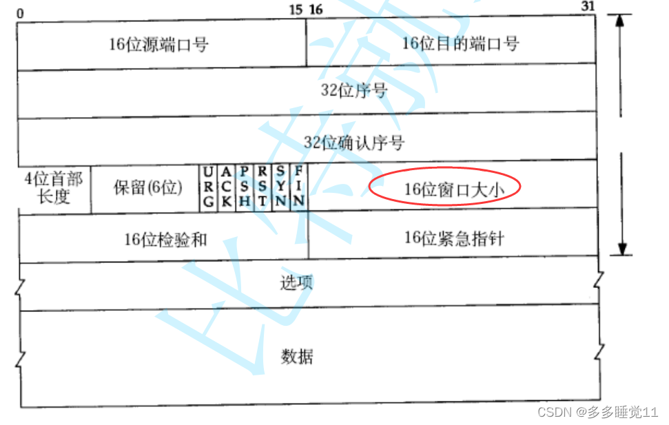 TCP的数据报结构中含有一个16位的窗口大小字段,单位是字节。