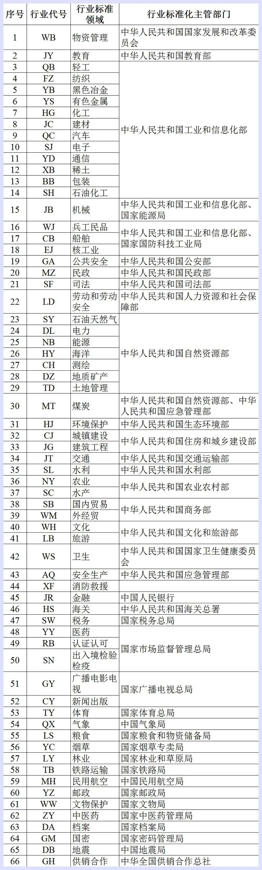 目前,我国共有66个行业代号。随着我国深化标准化工作改革的深入推进,部分行业主管部门已经开始采取措施限定行业标准的制定范围、缩减行业标准数量。