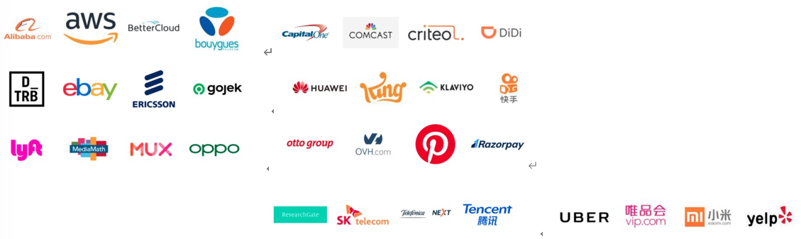 以下是 Flink 官网列出的知名企业用户,如图 1-3 所示,他们在生产环境中有各种各样有趣的应用。