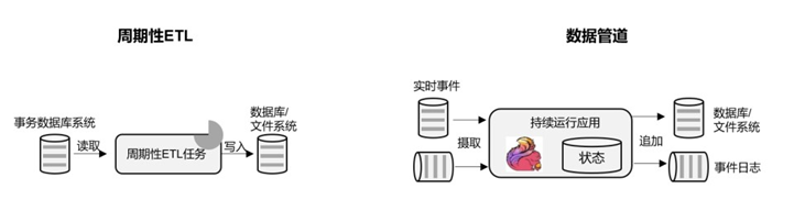 所谓数据管道的作用与 ETL 类似。它们可以转换和扩展数据,也可以在存储系统之间移动数据。不过如果我们用流处理架构来搭建数据管道,这些工作就可以连续运行,而不需要再去周期性触发了。比如,数据管道可以用来监控文件系统目录中的新文件,将数据写入事件日志。连续数据管道的明显优势是减少了将数据移动到目的地的延迟,而且更加通用,可以用于更多的场景。