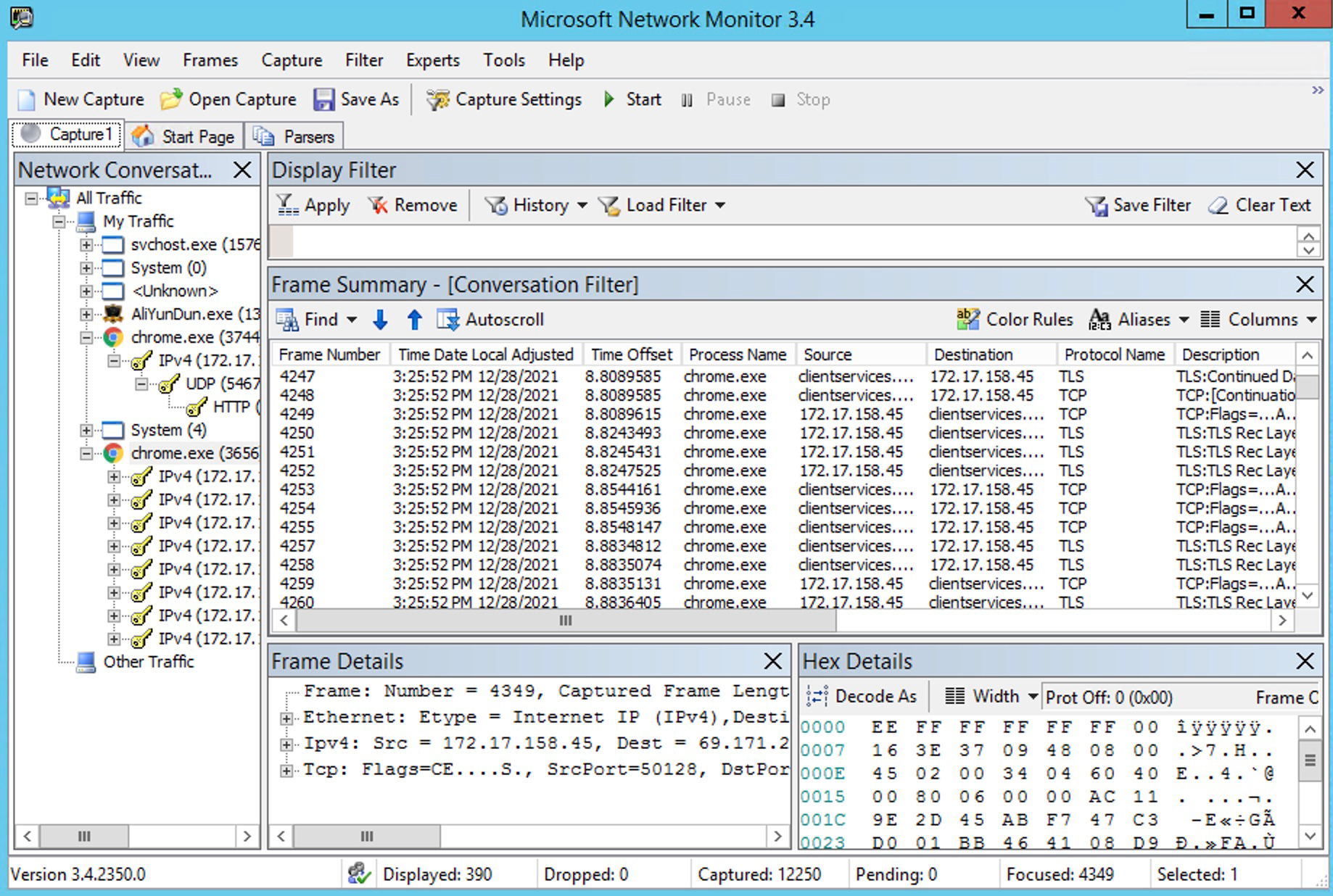 前面讲的tcpdump和Wireshark,主要是围绕Linux平台的,那Windows平台呢?事实上,从Windows 98/NT开始,Windows上就基于WinPcap实现了抓包工具Network Monitor。它的使用方法和界面,跟Wireshark也比较类似。