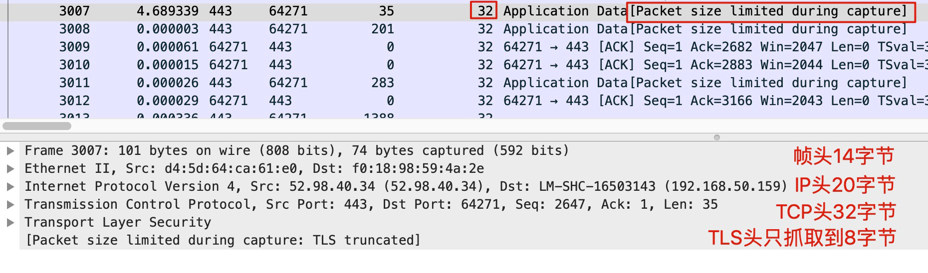 那么,如果你怀疑TLS或者更上面的应用层也跟问题有关,我建议你就去掉size的限制,还是抓取全部数据为好。