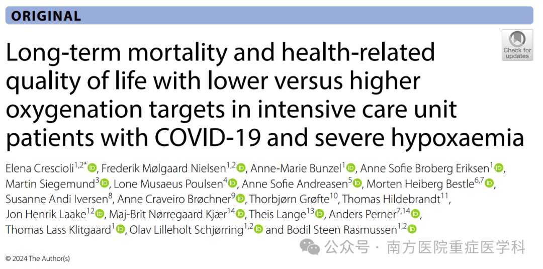研究结论:在COVID-19合并严重低氧血症的成人ICU患者中,较低氧合目标似乎并未导致更多生存质量较差的幸存者,这种结果可能提示较低氧合目标的益处。