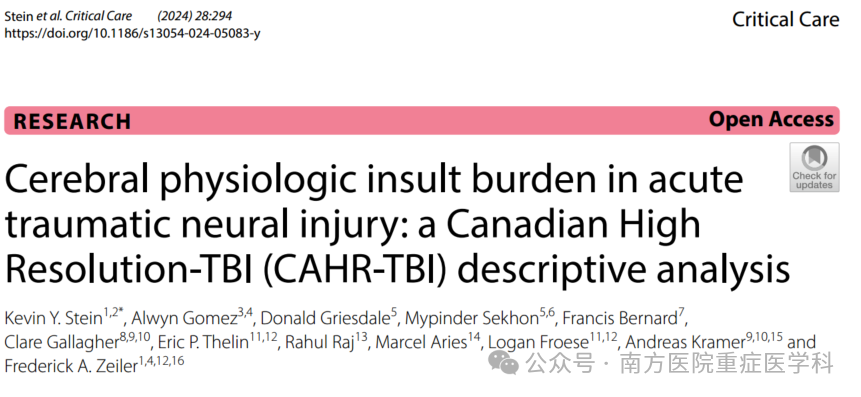 急性外伤性神经损伤的脑生理性损伤负担:加拿大高分辨率tbi(CAHR-TBI)描述性分析