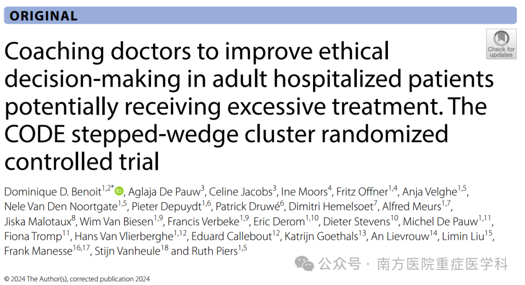 Coaching doctors to improve ethical decision-making in adult hospitalized patients potentially receiving excessive treatment. The CODE stepped-wedge cluster randomized controlled trial