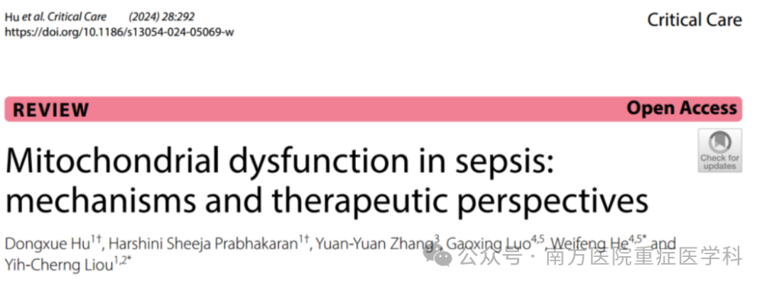 Mitochondrial dysfunction in sepsis: mechanisms and therapeutic perspectives