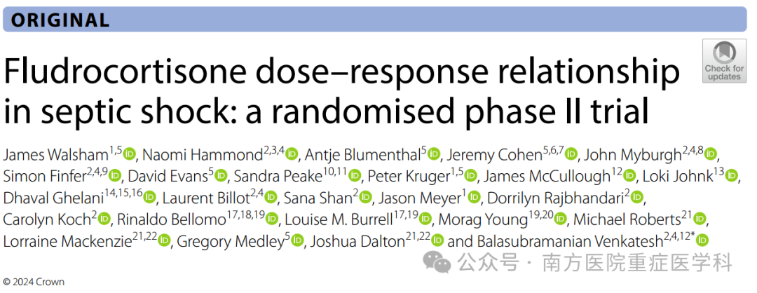氟氢可的松在感染性休克中的剂量反应关系:一项II期随机试验