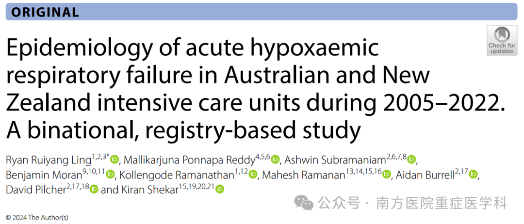 研究目的:急性低氧血症性呼吸衰竭(AHRF)是入住重症监护病房(ICU)的常见原因。然而,患者特征、结果和随时间变化的趋势尚不清楚。本文描述了AHRF患者随时间推移的流行病学和结局。