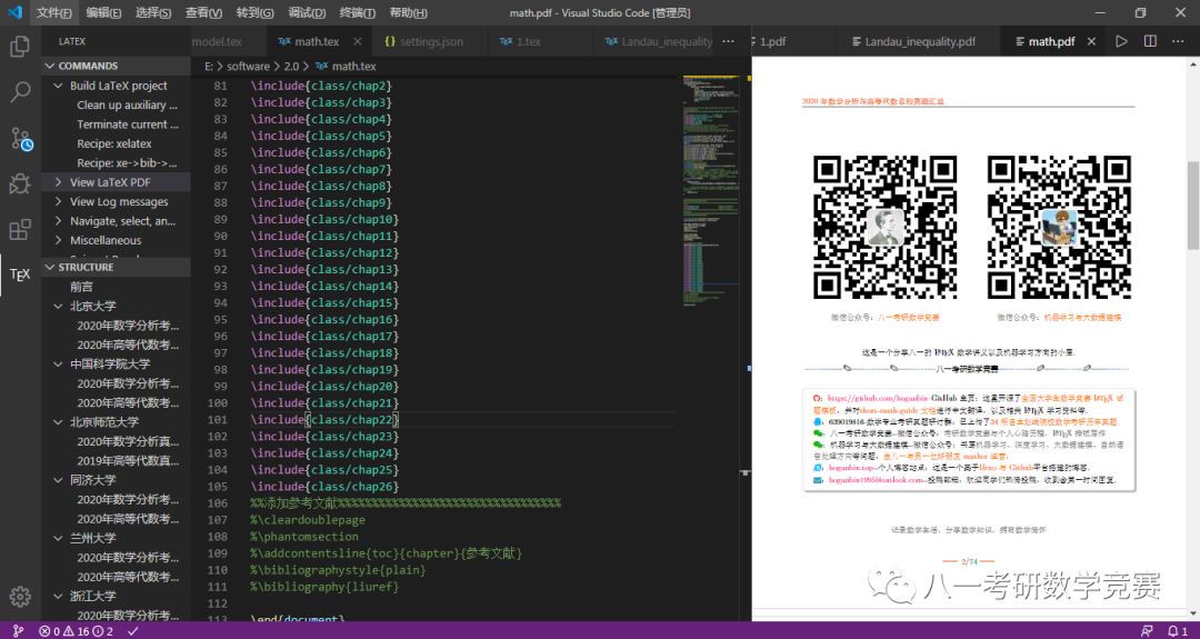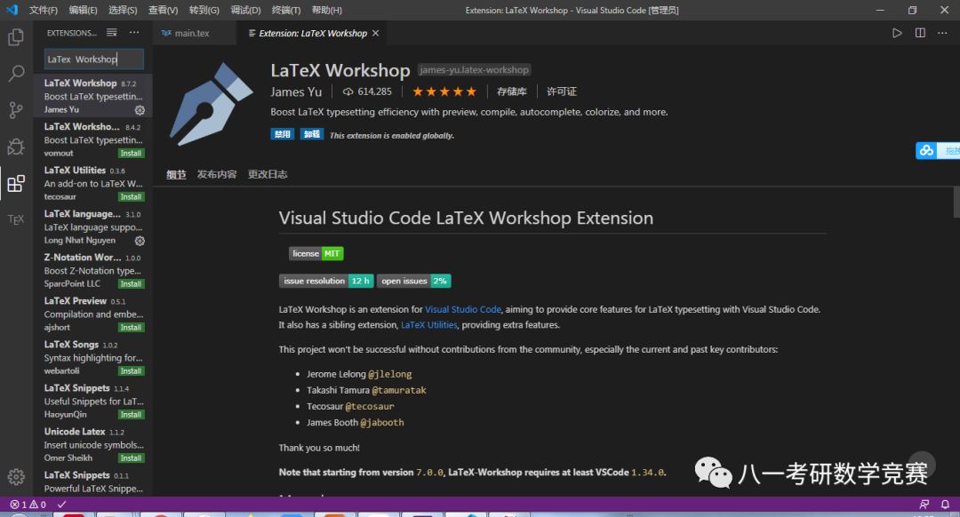 当你习惯用 TeXstudio 配合 TeXLive 2019 编写LaTeX文档,很长一段时间它会成为你的唯一,但有些同学 受不了TeXstudio那远古的软件界面,就会着手使用开源又免费的VSCode,它的确是一款万能编辑器;对比TexStudio,它的自定义快捷键与工具栏等功能是远比VSCode强大,而且TexStudio本身就是专业软件,VSCode只是靠插件来使用,这并不如IDE(TeXstudio与Winedt)便利,但其他方面我是认为VoCode已经基本胜任了,比如它的高分屏.下面开始进行讲解VSCode 安装与配置: