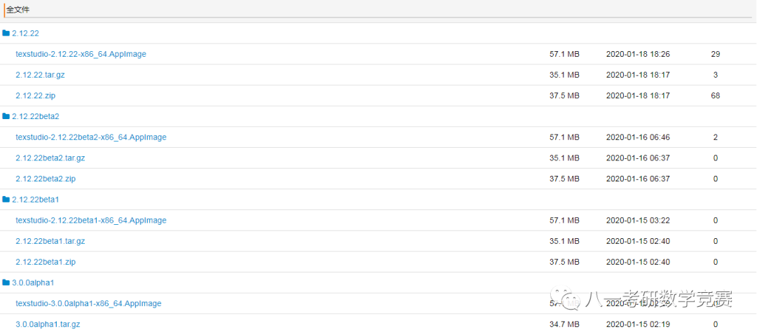 里面有TeXstudio版本历史记录,从最初2013-01-06 更新 TeXstudio 2.5.2版本到今年上个月18号的TeXstudio 2.12.22版本,见如图: