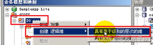 1.1 直接在维度表上右键选择'创建逻辑表' => '具有级别的层次的维'
