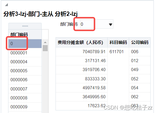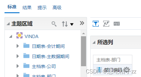 新建一个'分析',只选择需要进行主从监督的列'部门编码'
