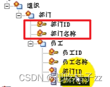 如此,可以在后面将'部门ID'字段删除,只用'部门名称'来判断即可。再对'部门'的上一级进行重命名'组织',下一级进行编辑'员工'(设置主键,以及用于显示)