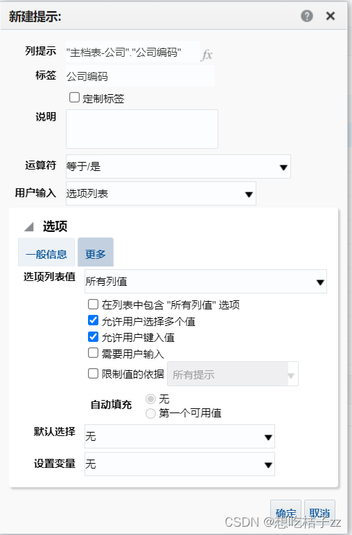 在‘新建提示’中选择你要求可以提示的选项,比如可不可以多值之类的,如下图:
