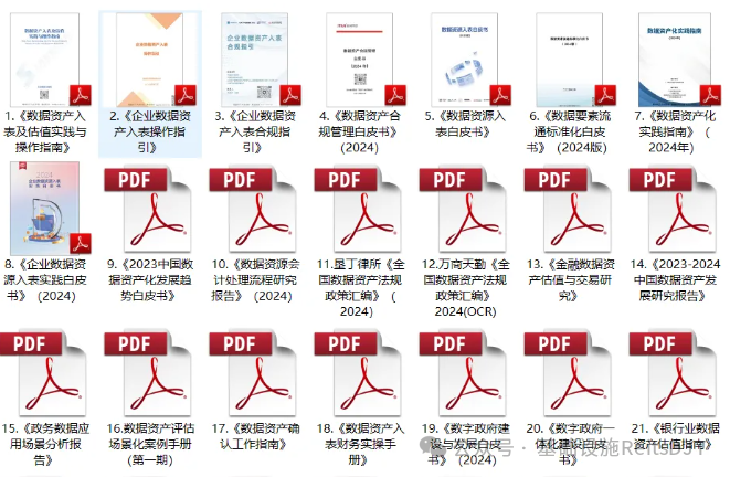 扫描下方二维码,领取天津市数据资源服务联合体发布的《企业数据资产入表操作指引》和上海数据交易所发布的《数据资产入表及估值实践与操作指南》、浙江省发布的《数据资产确认工作指南》、中国银行业协会发布的《银行业数据资产估值指南》、深圳数据交易所发布的《数据资源入表白皮书》、中国电子技术标准化研究院联合发布的《数据安全技术 数据分类分级规则》、《金融数据安全 数据安全分级指南》中国经济信息社联合发布的《企业数据资产入表合规指引》、海南省数据产品超市印发《数据资产评估场景化案例手册(第一期)》、中国计算机行业协会发起《数据分类分级产品技术要求》《全国数据资产法规政策汇编》垦丁陈双律师团队整理
