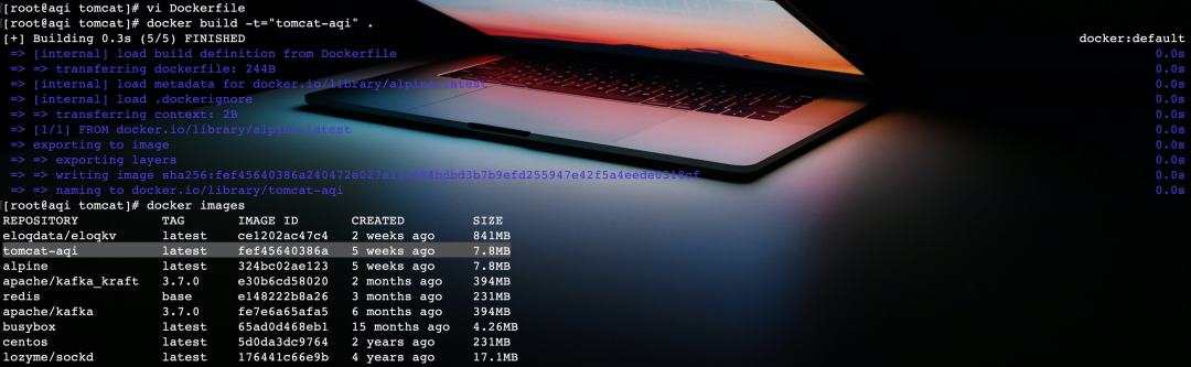 讯享网docker build -t=“tomcat-aqi” .