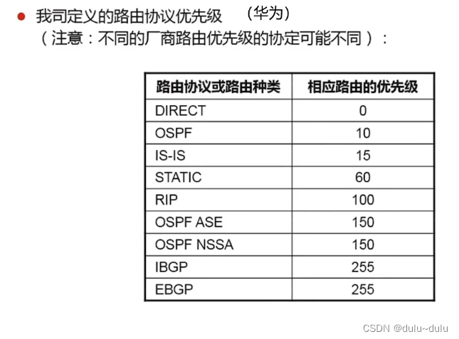 •华为设备上路由优先级为100