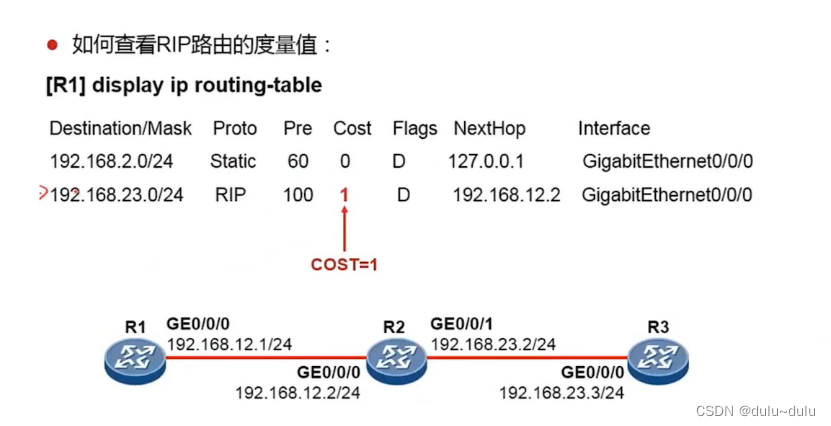 •最大跳数:当一个路由条目发送出去会自加1跳,跳数最大为16跳,意味着不可达