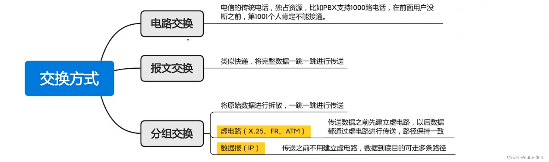 FR的分组交换方式为虚电路方式,其余两者为ATM和X.25,这里不做细致讲解,可以看这篇: