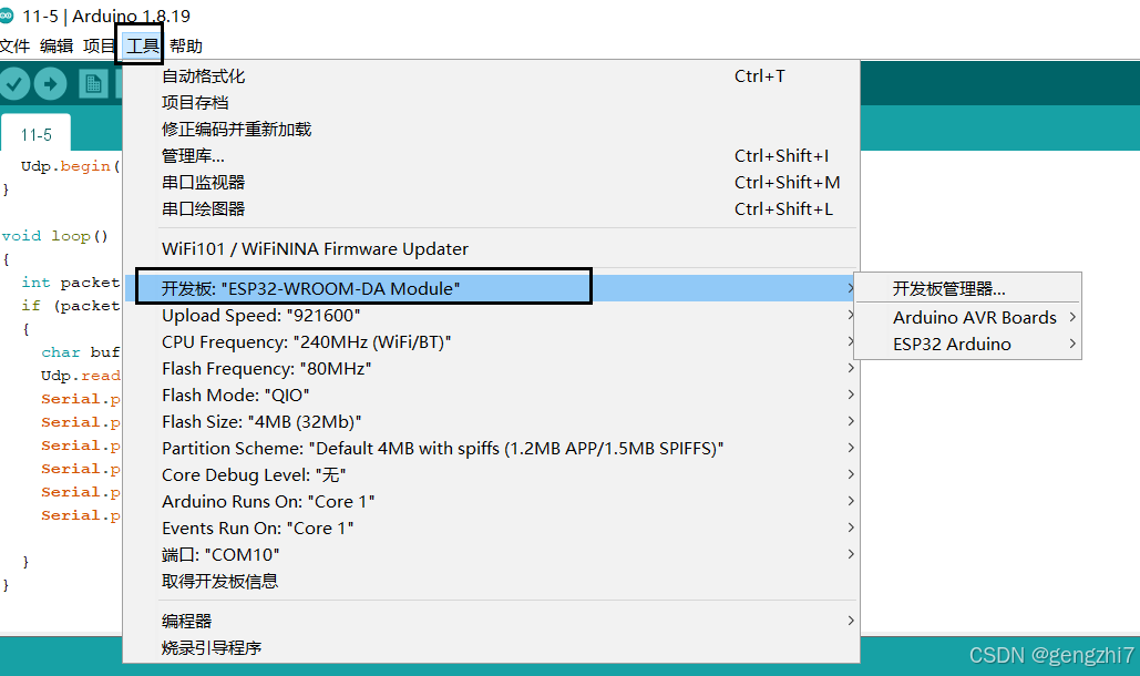 代码来源于使用Arduino开发ESP32(04):UDP通讯使用说明_esp32接收广播-CSDN博客