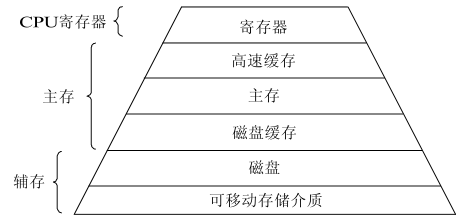 对于通用计算机而言,存储层次至少应具有三级:最高层为 CPU 寄存器,中间为主存,最底层是辅存。