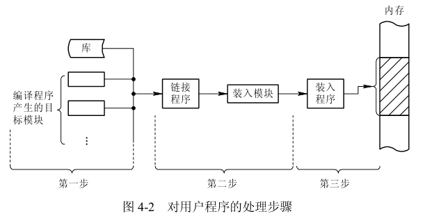 在多道程序环境下,要使程序运行,必须先为之创建进程。而创建进程的第一件事,便是将程序和数据装入内存。如何将一个用户源程序变为一个可在内存中执行的程序,通常都要经过以下几个步骤: