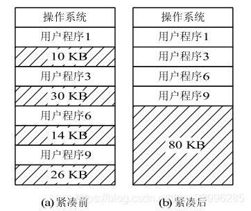 动态重定位分区分配算法与动态分区分配算法基本上相同,差别仅在于:在这种分配算法中,增加了紧凑的功能,通常,在找不到足够大的空闲分区来满足用户需求时进行紧凑。