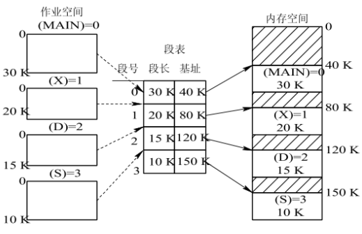 - 内存空间被动态划分为若干长度不同的区域,称为物理段,每个物理段由起始地址和长度确定。
