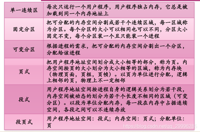 采用这种存储管理方式时,可把内存分为系统区和用户区两部分,系统区仅提供给 OS 使用,通常是放在内存的低址部分;用户区是指除系统区以外的全部内存空间,提供给用户使用。