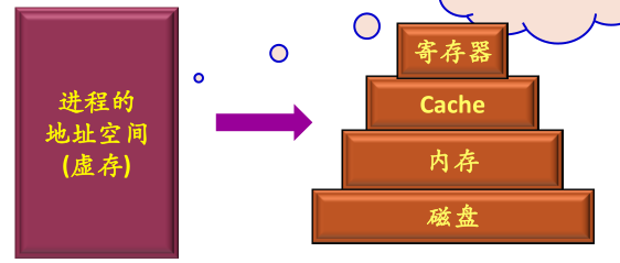 进程可以在很少的时钟周期内使用一条 load 或 store 指令对可执行存储器进行访问,但对辅存的访问则需要通过 I/O 设备来实现。