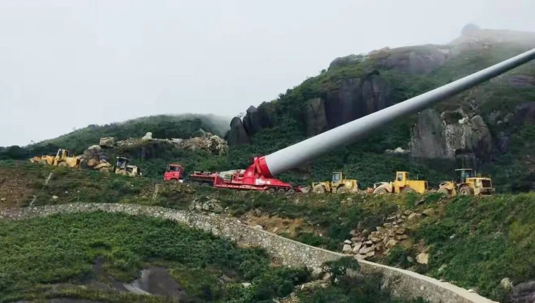前拉后推,陆上风电叶片举升车在崇山峻岭间跋涉