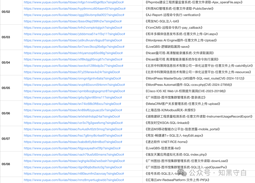 检测脚本请移步星球获取,现价99,私聊88,每天更新3-4篇漏洞情报。近期更新如下: