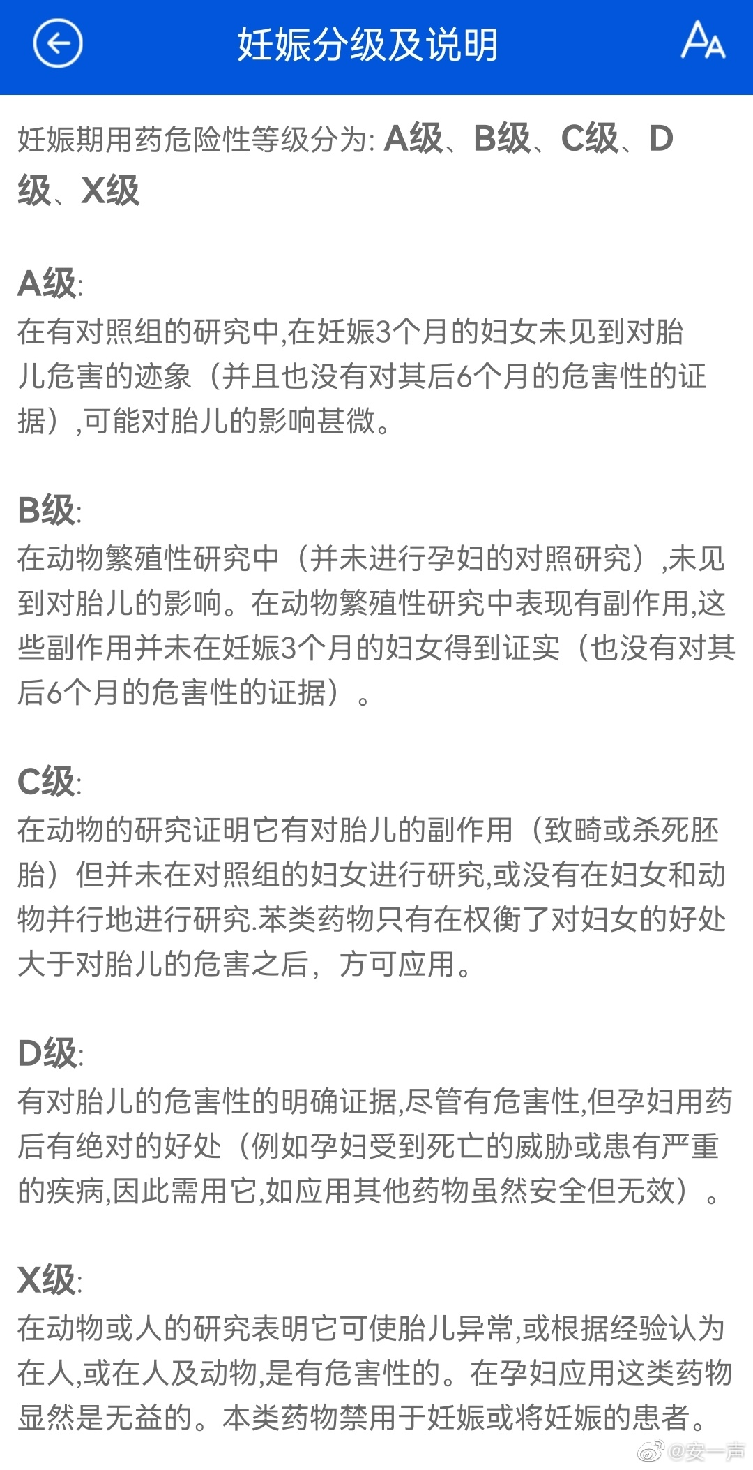 如果你要查询妊娠期/哺乳期药品安全等级,一方面可以根据这篇文章里的方法,另一方面也可以初步使用 人工智能app(例如通义千问app) 查询。但是要注意这类app的结果不是绝对准确的,只能作为线索使用。此外,你也可以参考虾米妈咪这篇文章,包括了绝大多数常见药物:《虾米妈咪:哺乳和妊娠期常用药安全一览表》。