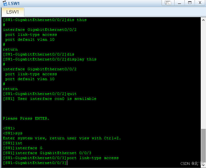 - :进入交换机的某个具体接口视图,以便对该接口进行配置。