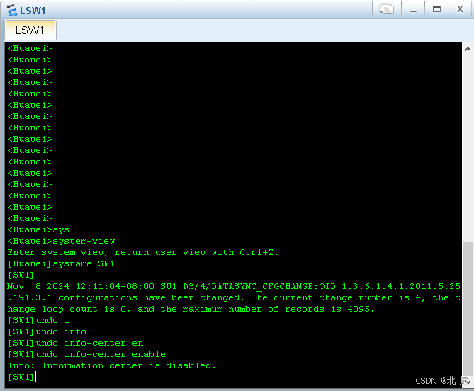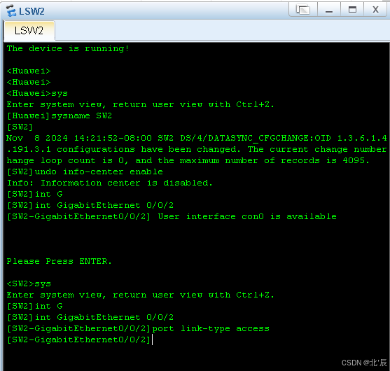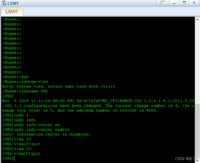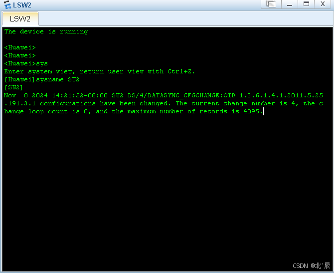 系统视图下输入 “display this”,会显示当前系统的全局配置信息