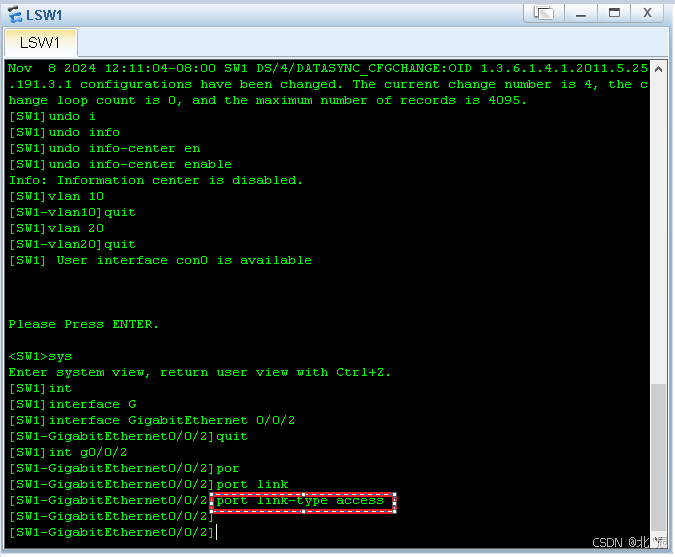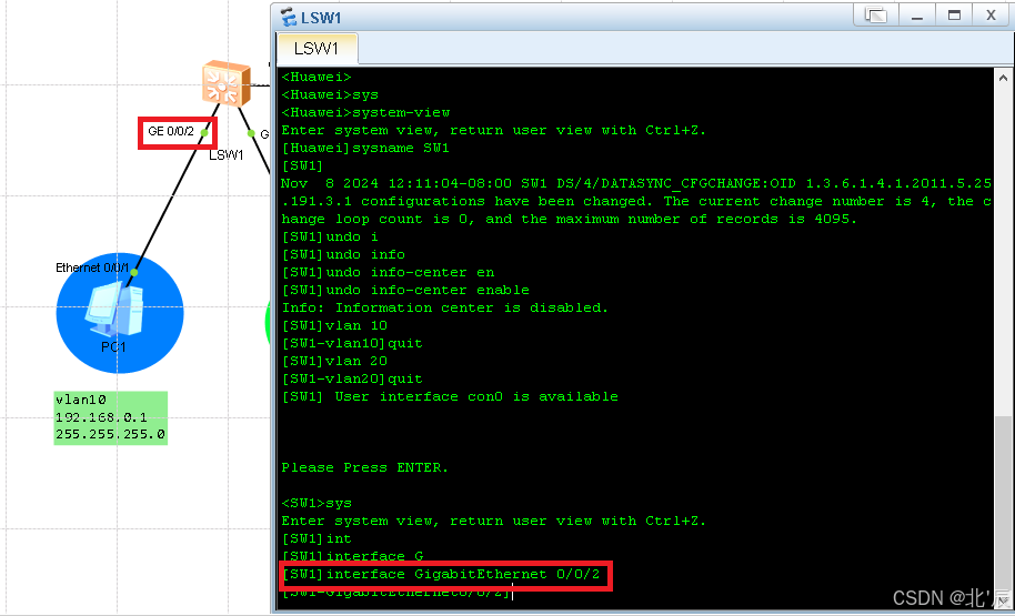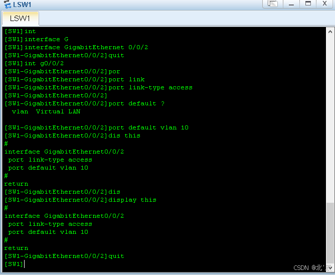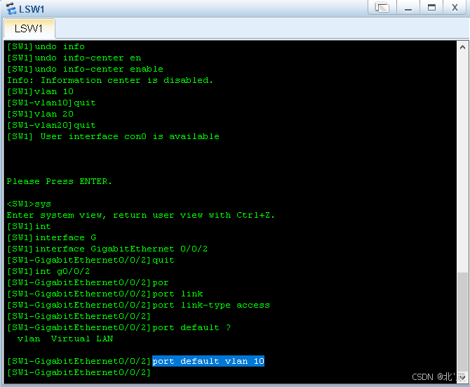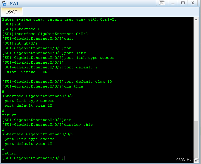 3、将PC1连接的端口G0/0/2加入到VLAN10中