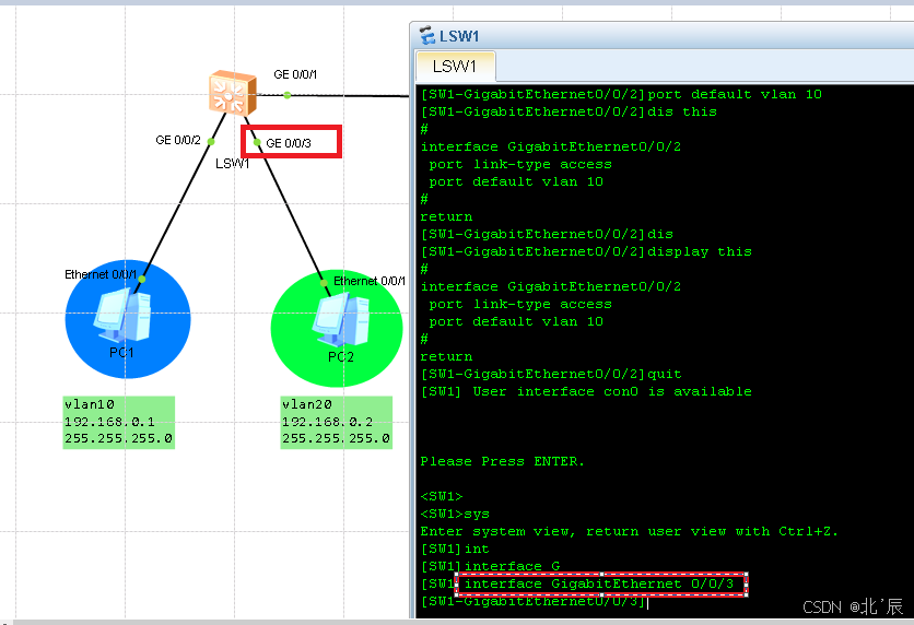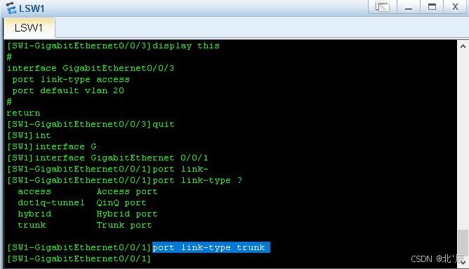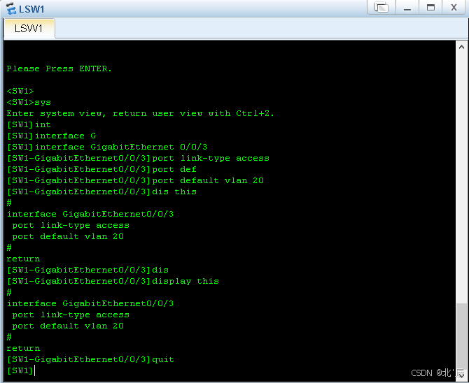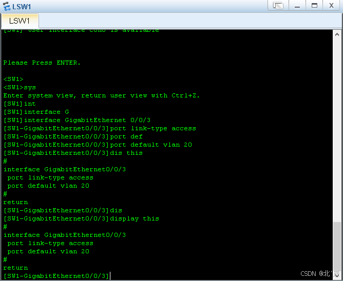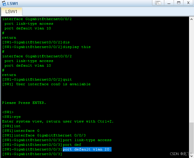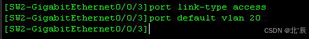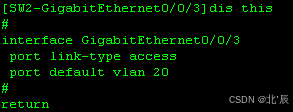 port default vlan 20 :表示已经将接口加入到VLAN20中