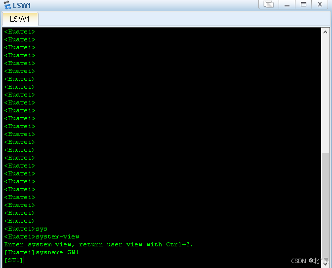 - 不能对交换机进行配置修改,但可以通过特定的命令进入其他视图进行配置操作。