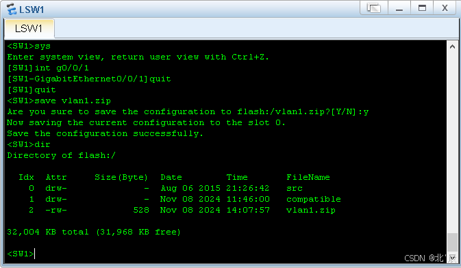 interface GigabitEthernet0/0/1:表示接口是GigabitEthernet0/0/1